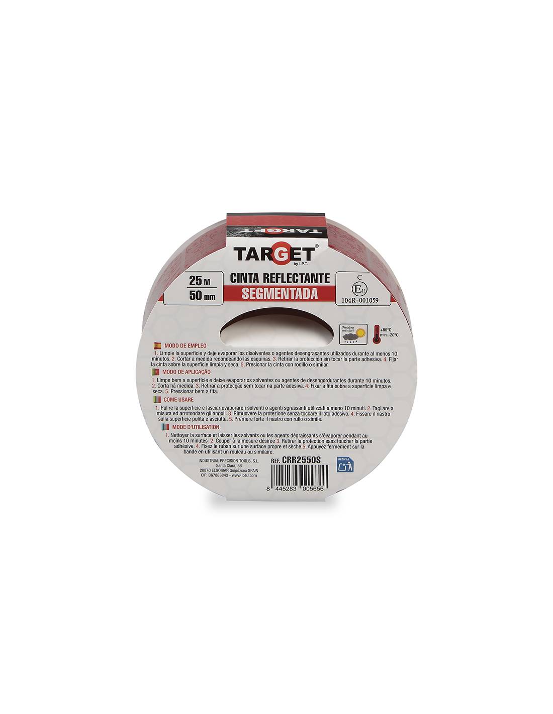 Cinta REFLECTANTE HOMOLOGADA 104R V23 ROJA 25 M X 50 mm SEGMENTADA