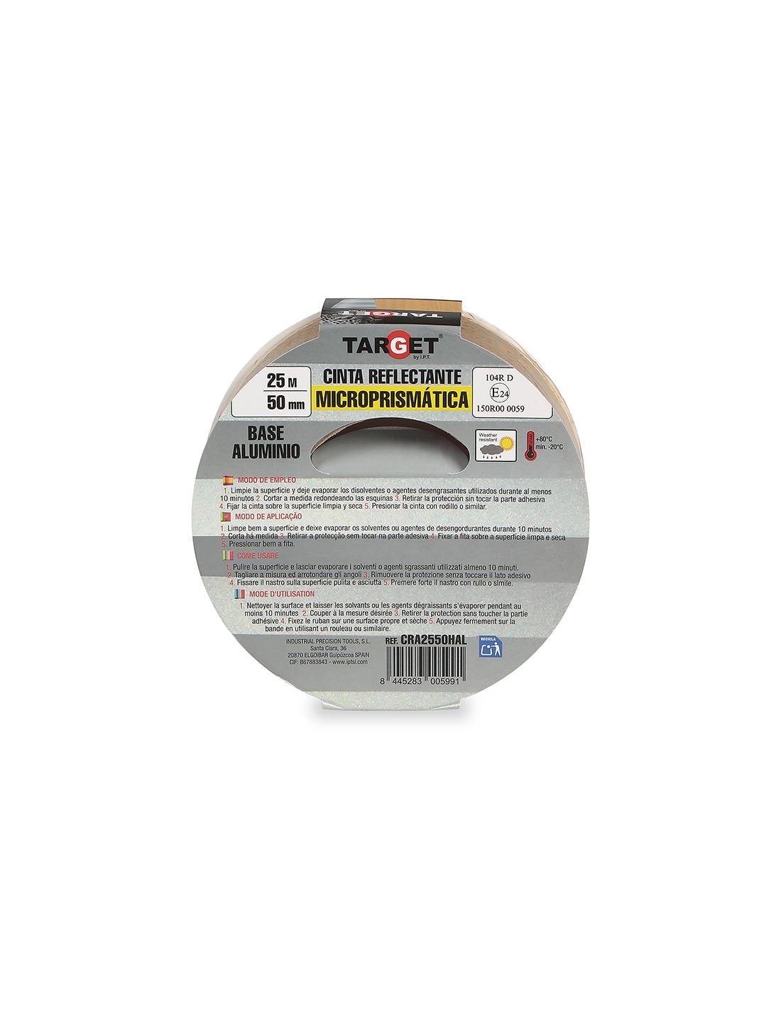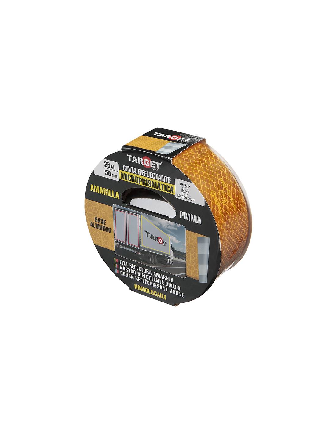 Cinta REFLECTANTE HOMOLOGADA 104R V23 AMARILLA 25M X 50mm BASE ALUMINIO