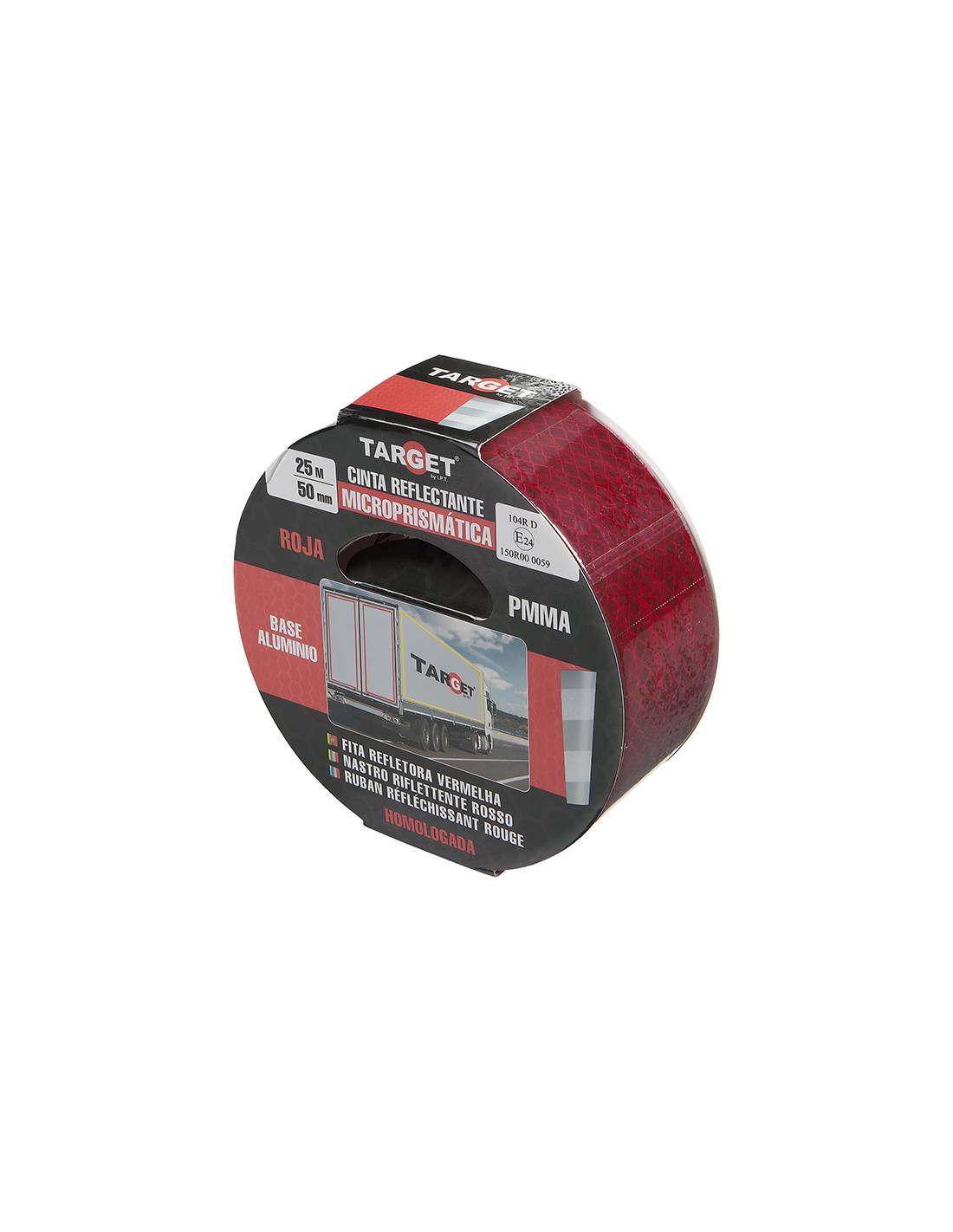 Cinta REFLECTANTE HOMOLOGADA 104R V23 ROJA 25M X 50mm BASE ALUMINIO