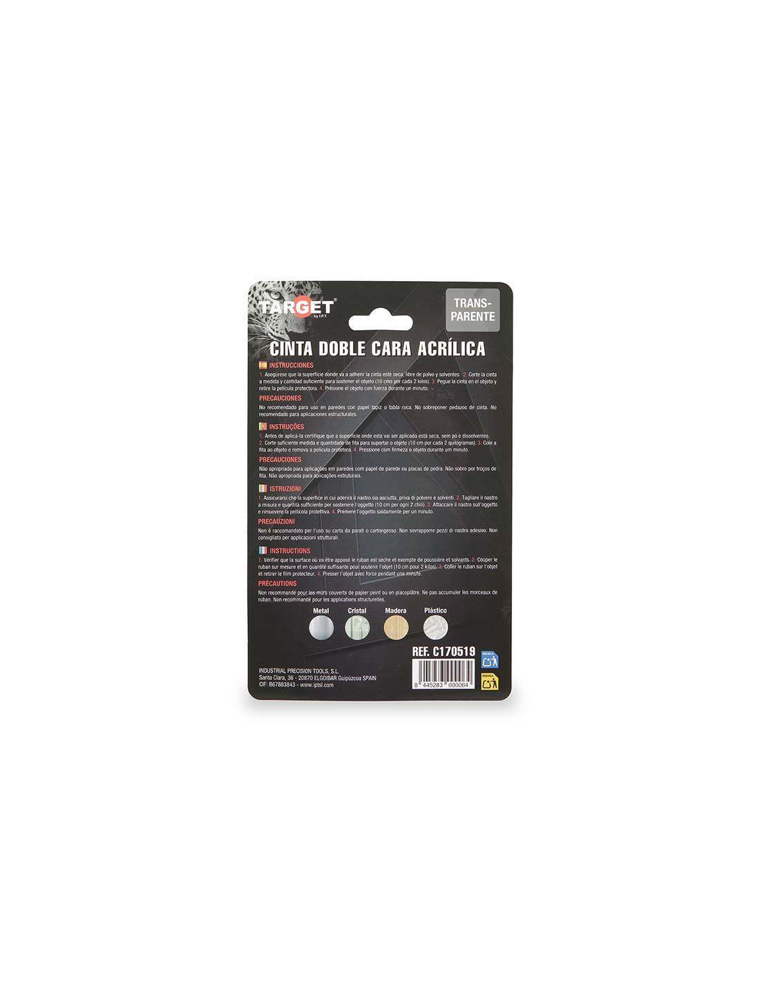 Ref. C170519 - Cinta DOBLE CARA Transparente Acrílica - 5 M x 19 mm
