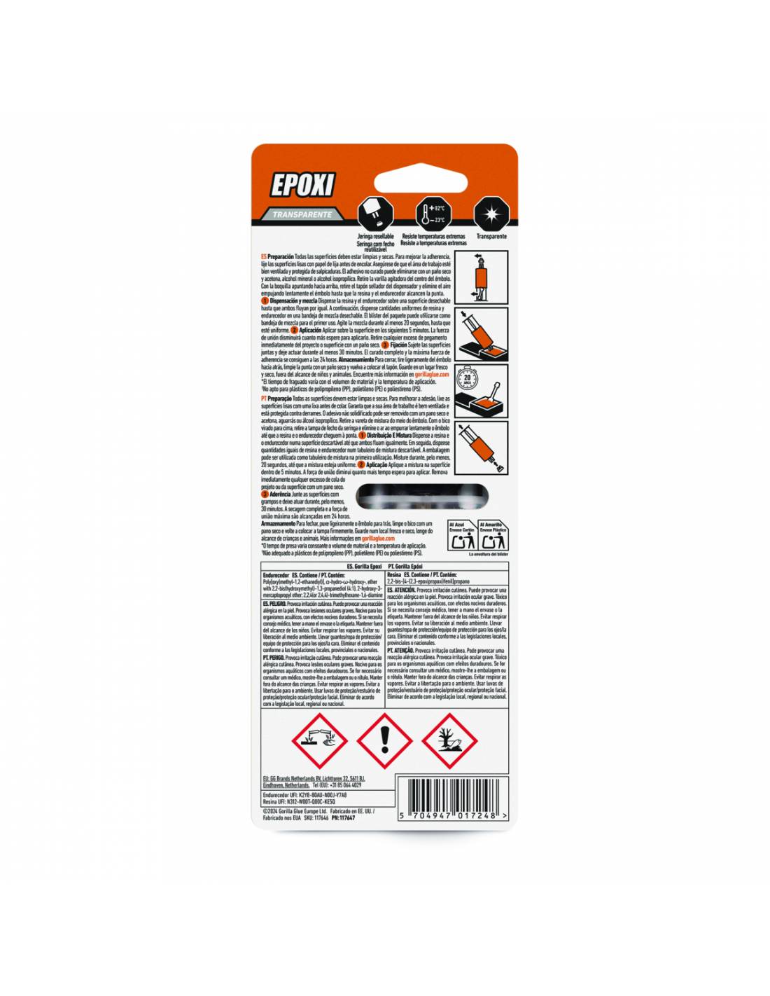 Gorilla Epoxi ofrece una unión fuerte y duradera tanto para reparaciones domésticas como de vehículos. La pistola fácil de usar dispensa una cantidad igual de resina y endurecedor, que cuando se mezclan crean una unión permanente, duradera y resistente al agua. La fórmula rellenadora de dos componentes Gorilla Epoxi se endurece en 5 minutos y une fácilmente acero, aluminio, vidrio, madera, cerámica, ladrillo y la mayoría de los plásticos.* Además, se seca con un color transparente, lo que garantiza un acabado perfecto de su proyecto. * No recomendando para su uso con polietileno o polipropileno o materiales similares