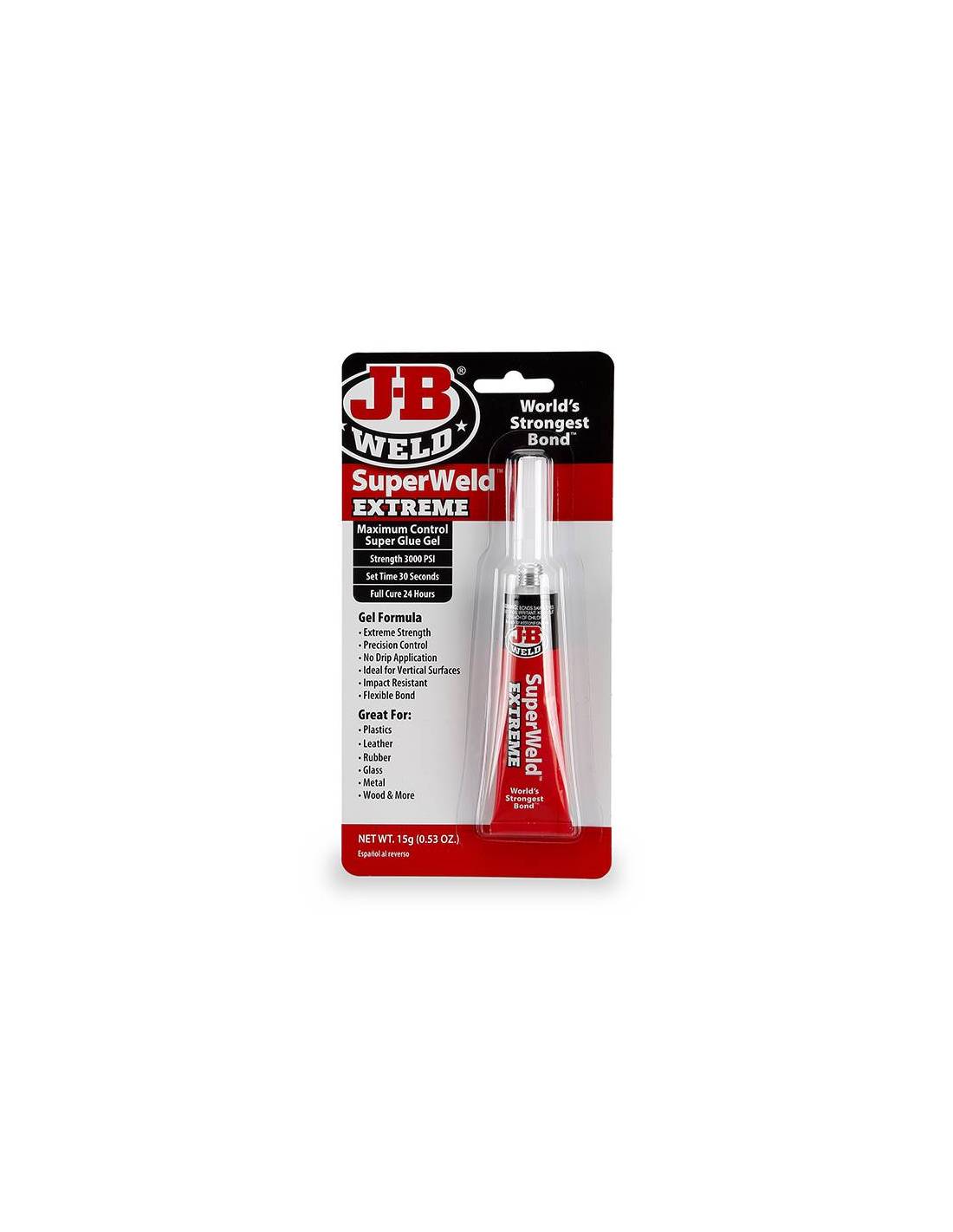 SuperWeld™ Extreme es un pegamento instantáneo especialmente formulado que proporciona una unión fuerte y flexible, y alcanza su curado completo en 24 horas. SuperWeld™ Extreme cuenta con una punta de precisión y una fórmula que no gotea, ¡lo que lo hace ideal para superficies tanto verticales como horizontales! Además, es resistente a los impactos y su unión flexible lo convierte en una excelente opción para plásticos, cuero, caucho, vidrio, metal ¡y mucho más!